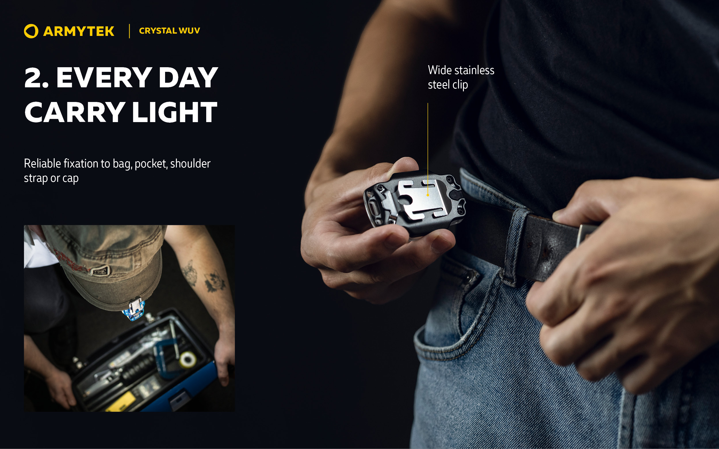Компактен мулти фенер 6 в 1 с бяла и ултравиолетова светлина. За ежедневни задачи, спорт и специализирана употреба. Светлинна мощност 150 лумена бяла светлина, 325 mW ултравиолетова светлина; Разстояние на лъча 12 метра бяла светлина; Дължина на вълната 365 nm ултравиолетова светлина; До 50 дни работа с едно зареждане на батерията; Вградената Li-Pol 600 mAh батерия се зарежда с всеки Micro USB кабел.