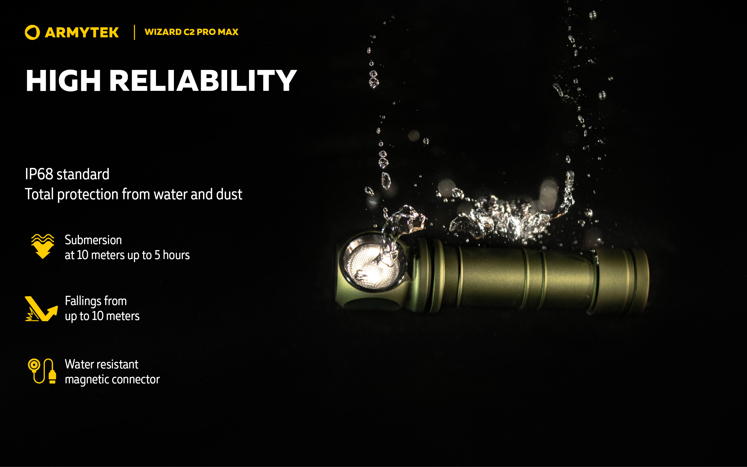 Светлинна мощност 4000 лумена; Дължина на лъча 114 метра; 2 месеца работа с едно зареждане на батерията; В комплекта има магнитно USB зарядно и 21700 Li-Ion 5000 mAh батерия.