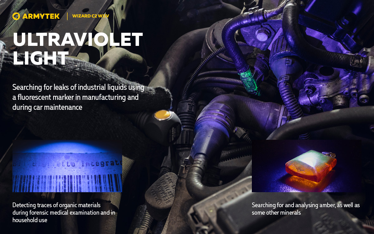 Мулти фенер 3 в 1 с бяла и ултравиолетова светлина. Оптимален както за специализирана професионална, така и за ежедневна употреба: в производството, по време на поддръжка на автомобил, за дейности на открито и у дома.